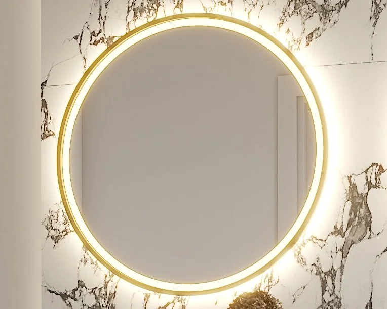 Nad umywalkami zawisły podświetlane dwa lustra łazienkowe okrągłe, które: