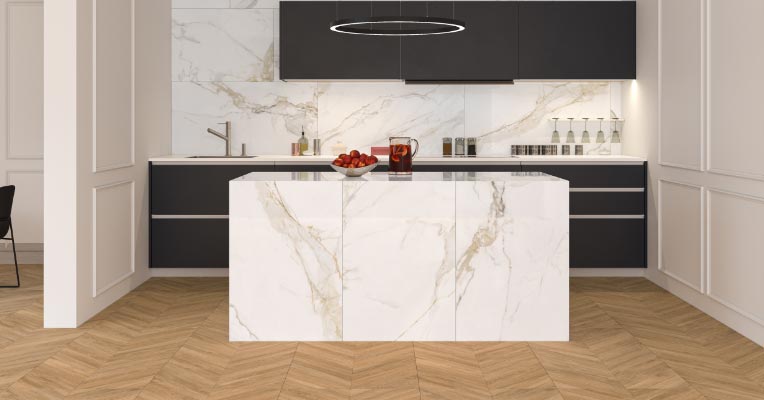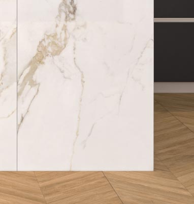 Kolekcja MARSHALL CALACATTA GOLD została stworzona zarówno w wersji matowej, jak i z połyskiem. Pierwszy wariant nada pomieszczeniom lekkości i zapewni znacznie łatwiejsze utrzymanie gresu w czystości. Z kolei drugi doskonale będzie odbijał światło, co optycznie powiększy pomieszczenia i doda im blasku. To Ty decydujesz, które wykończenie przyozdobi Twoją kuchnię czy łazienkę.