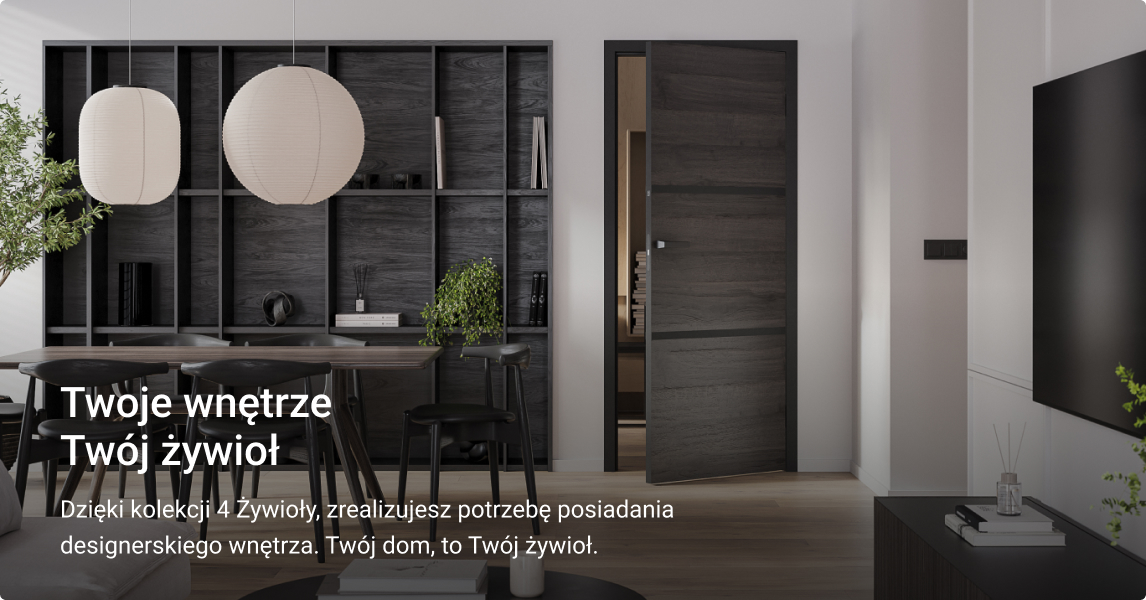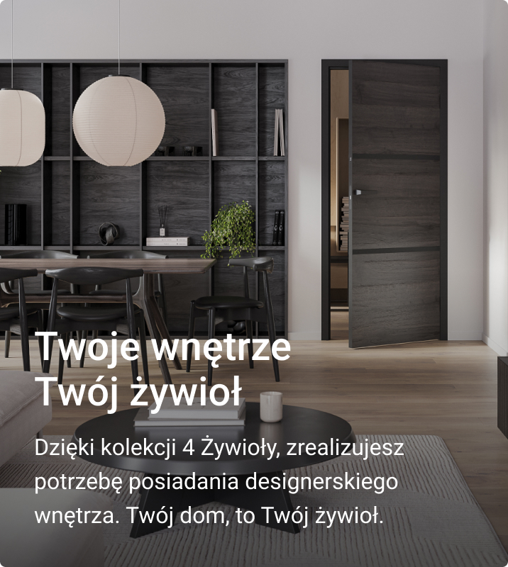 Kolekcja 4 Żywioły, to rozwiązanie, dzięki któremu wszystko możesz mieć w komplecie. Od ościeżnicy, po klamkę i pozostałe okucia. Do kompletu możesz dobrać sztukaterię czy listwy podłogowe.