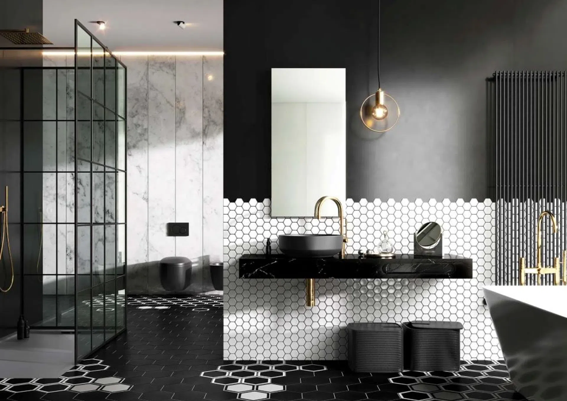 Sypialnie w stylu nowoczesnym coraz chętniej łączone są z garderobą i łazienką. Jeśli masz wystarczającą przestrzeń, zdecyduj się na montaż odbiornika telewizyjnego w części wyznaczonej na garderobę, np. oddzielonej ścianką lub półką dekoracyjną. Takie rozwiązanie doskonale sprawdzi się osobom, które lubią oglądać telewizję w trakcie wykonywania innych czynności.