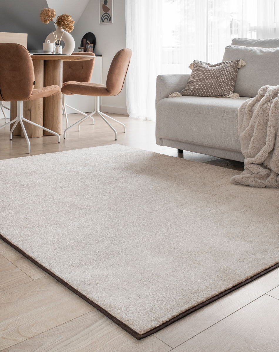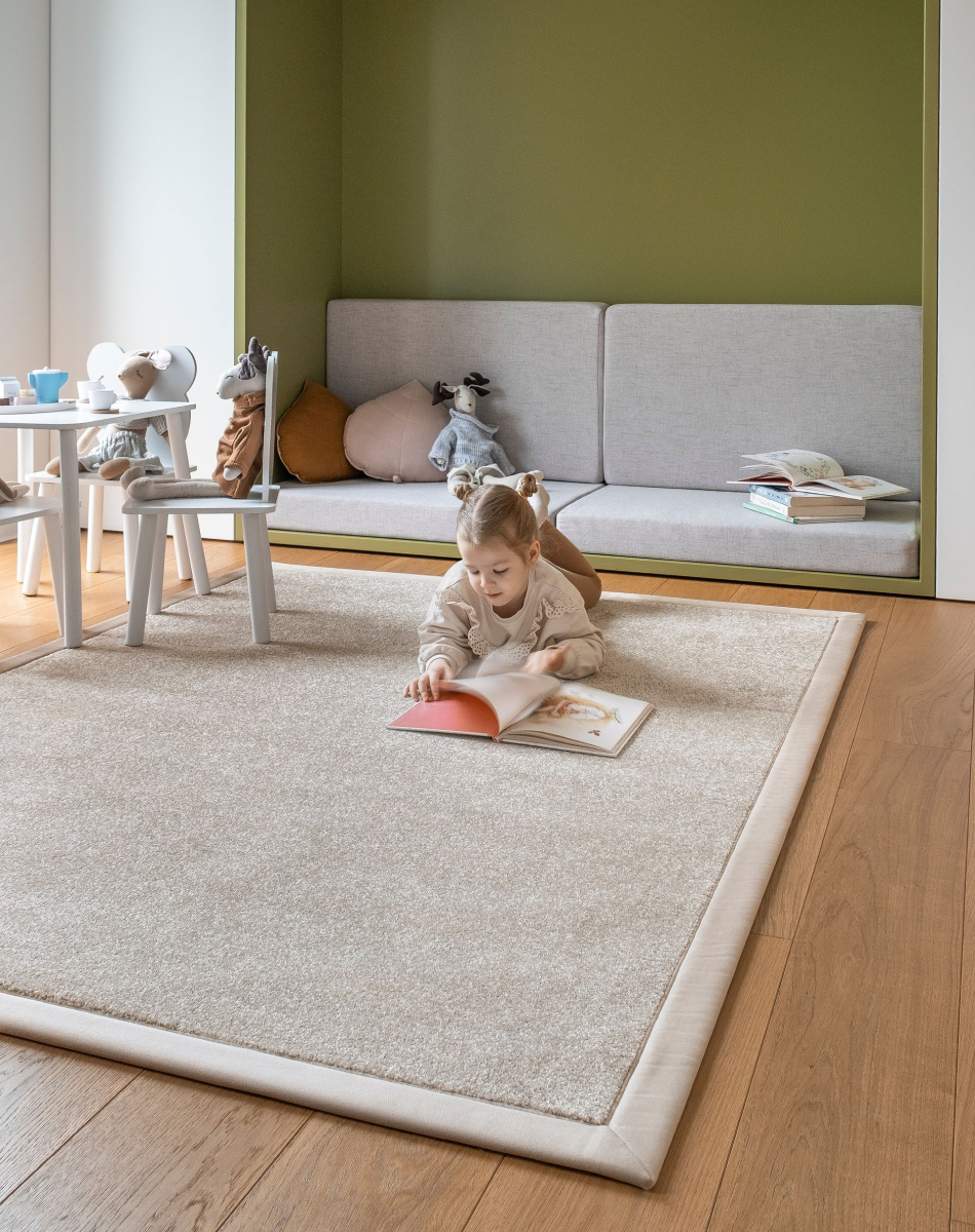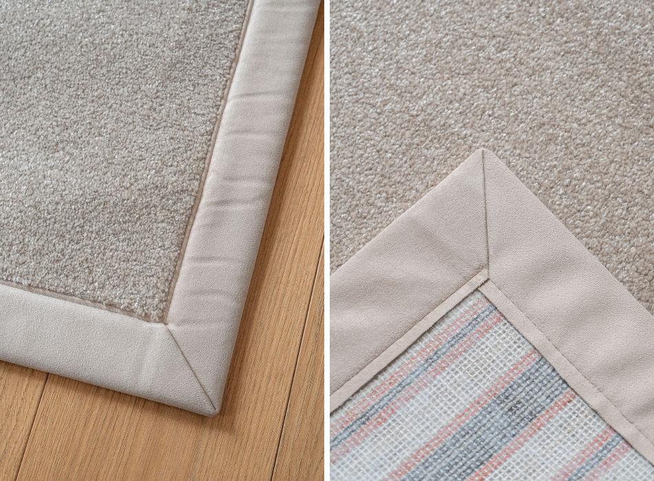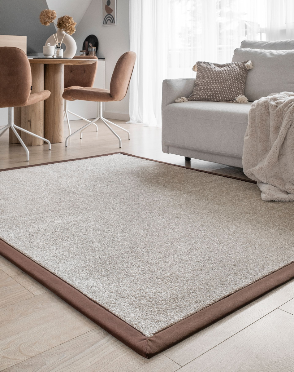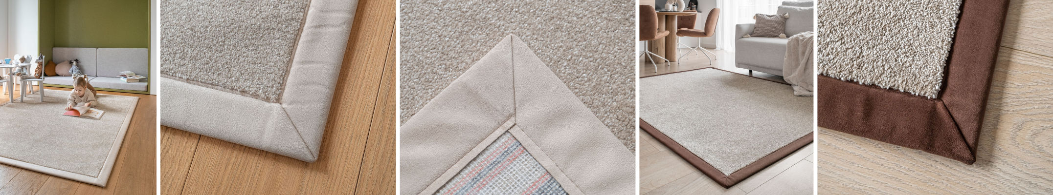 Delikatna i aksamitna w dotyku tkanina dająca uczucie przytulności. Tworzy ramę dla wykładziny, której kolor może być zbliżony do wykładziny lub wręcz odwrotnie mocno kontrastujący. Doskonały, ekskluzywny akcent w pomieszczeniu i trwałe zabezpieczenie brzegów wykładziny. Doskonale sprawdzi się w dużych salonach i pokojach dzieci.