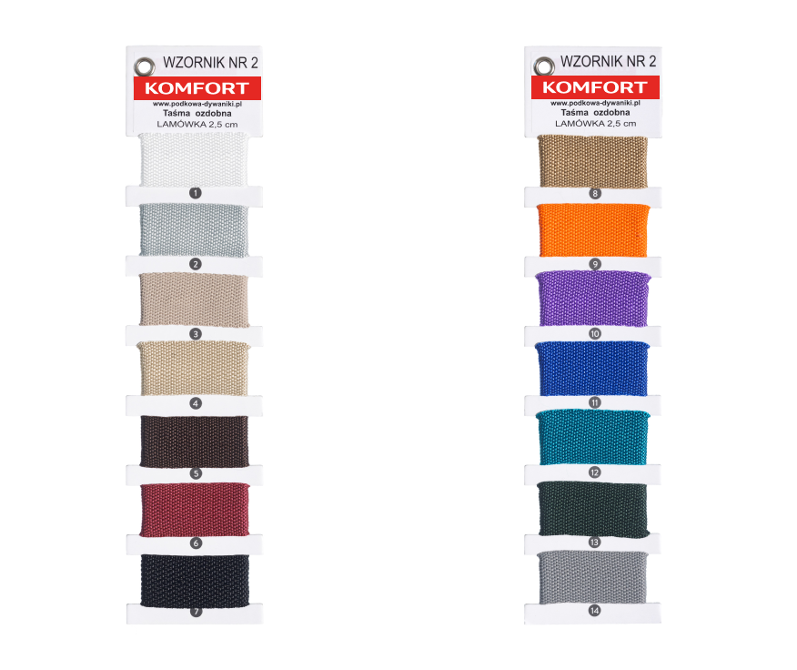 Mocna i trwała taśma o charakterystycznym splocie. Zabezpiecza brzegi wykładziny. Tworzy delikatną ramkę wykładziny, której kolor może być zbliżony do wykładziny lub wręcz odwrotnie mocno kontrastujący. Doskonałe do miejsc o wysokim natężeniu ruchu.