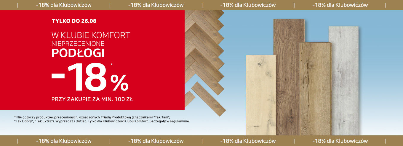 Dodatkowe informacje. Dodatkowo możesz skorzystać z naszej usługi transportu, projektowania czy montażu. Usługi nie są objęte promocją "Podłogi -18%".