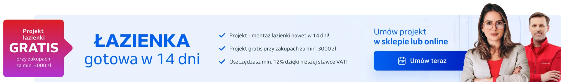 Dodatkowo możesz skorzystać z naszej usługi transportu, projektowania czy montażu. Usługi nie są objęte promocją “Satysfakcja z ceny! Produkty do łazienki do -30%”.