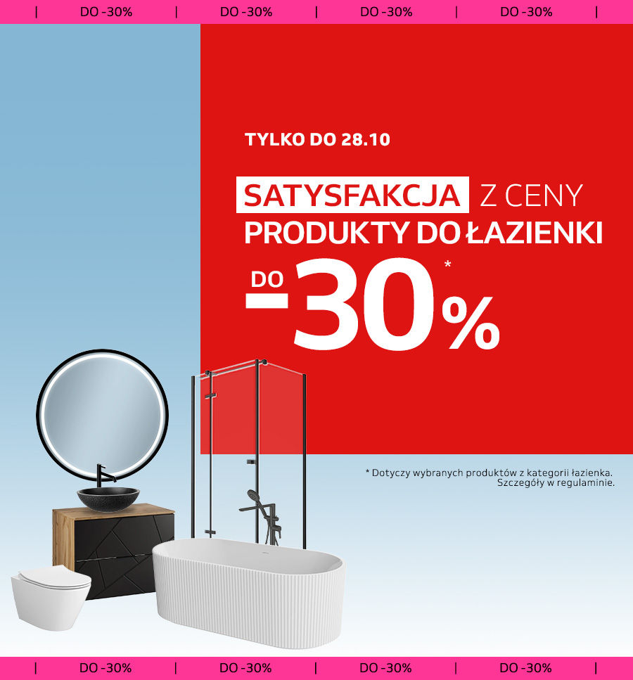Dodatkowo możesz skorzystać z naszej usługi transportu, projektowania czy montażu. Usługi nie są objęte promocją “Satysfakcja z ceny! Produkty do łazienki do -30%”.