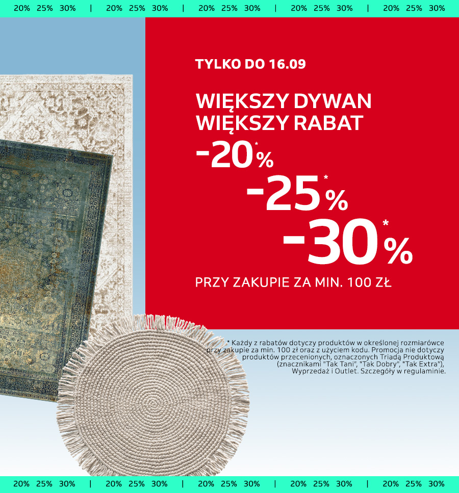 - - Dywany 200 cm x 300 cm – wysokość rabatu: 25%. Użyj kodu: DYW25M