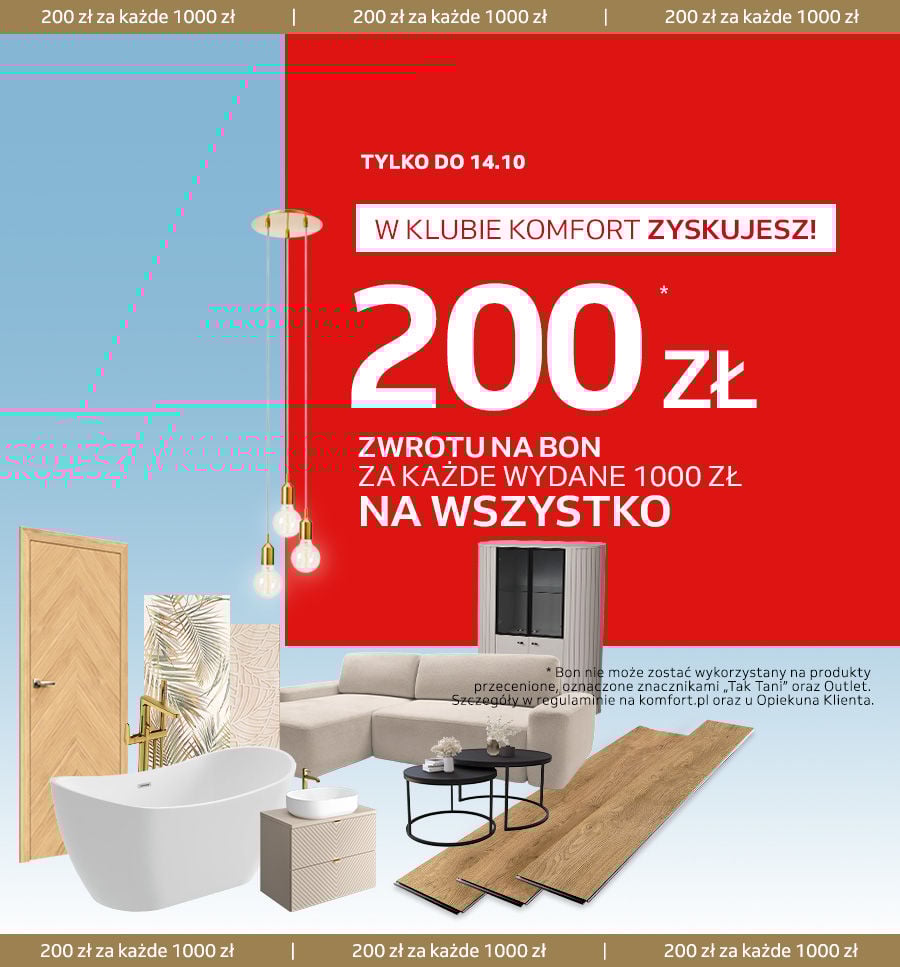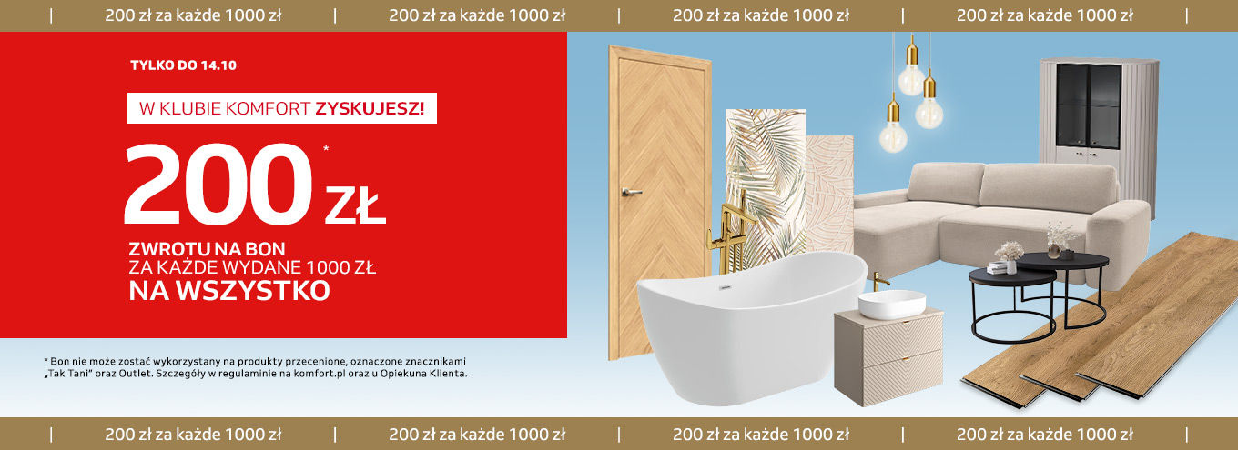 Odwiedź komfort.pl w dniach 08.10 do 14.10.2025 r. i dodaj do koszyka produkty objęte promocją na kwotę min. 1000 zł.