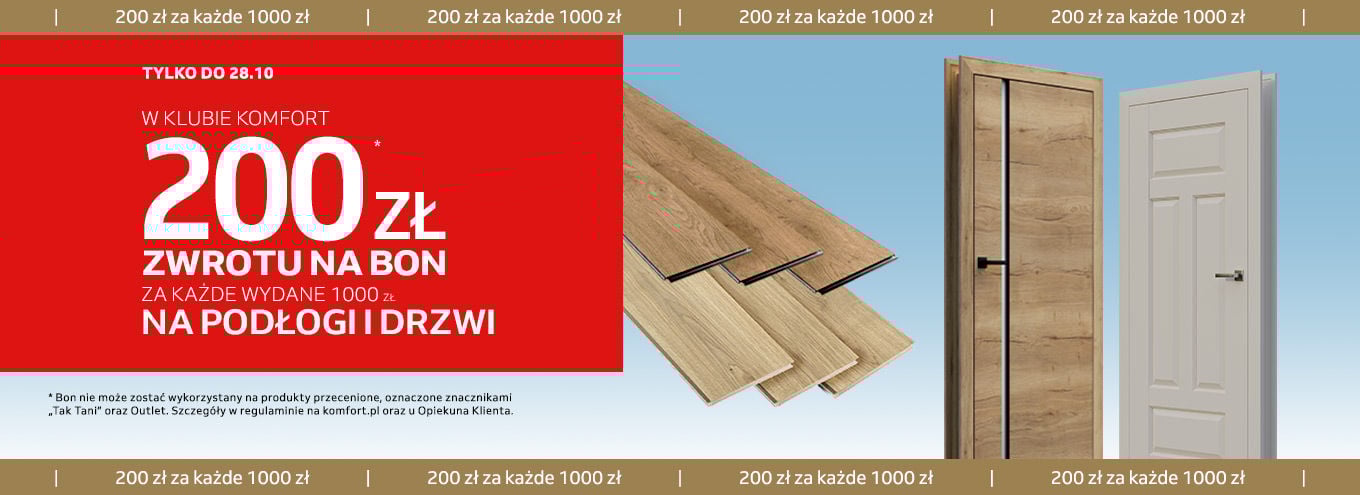 Odwiedź komfort.pl w dniach 22.10 do 28.10.2025 r. i dodaj do koszyka produkty objęte promocją na kwotę min. 1000 zł.